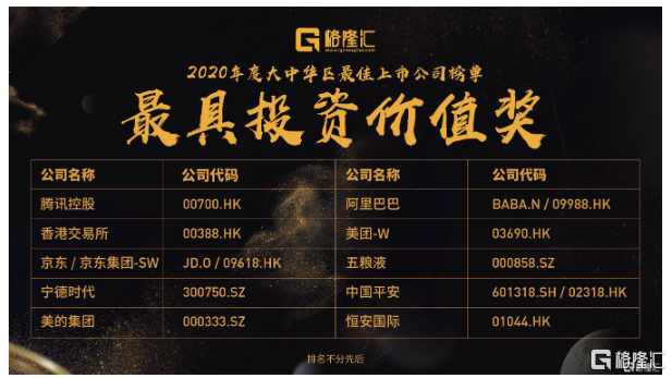 今年恰逢是中国资本市场发展30周年,站在新时代的起点,为致敬中国经济的价值创造者及发现者,11月16日,由格隆汇主办的“大中华区最佳上市公司·2020”颁奖典礼在成都隆重举行,DB电竞国际集团荣获“年度最具投资价值奖”,同时荣获该奖项的还有阿里巴巴、腾讯、美团、京东等知名上市公司。